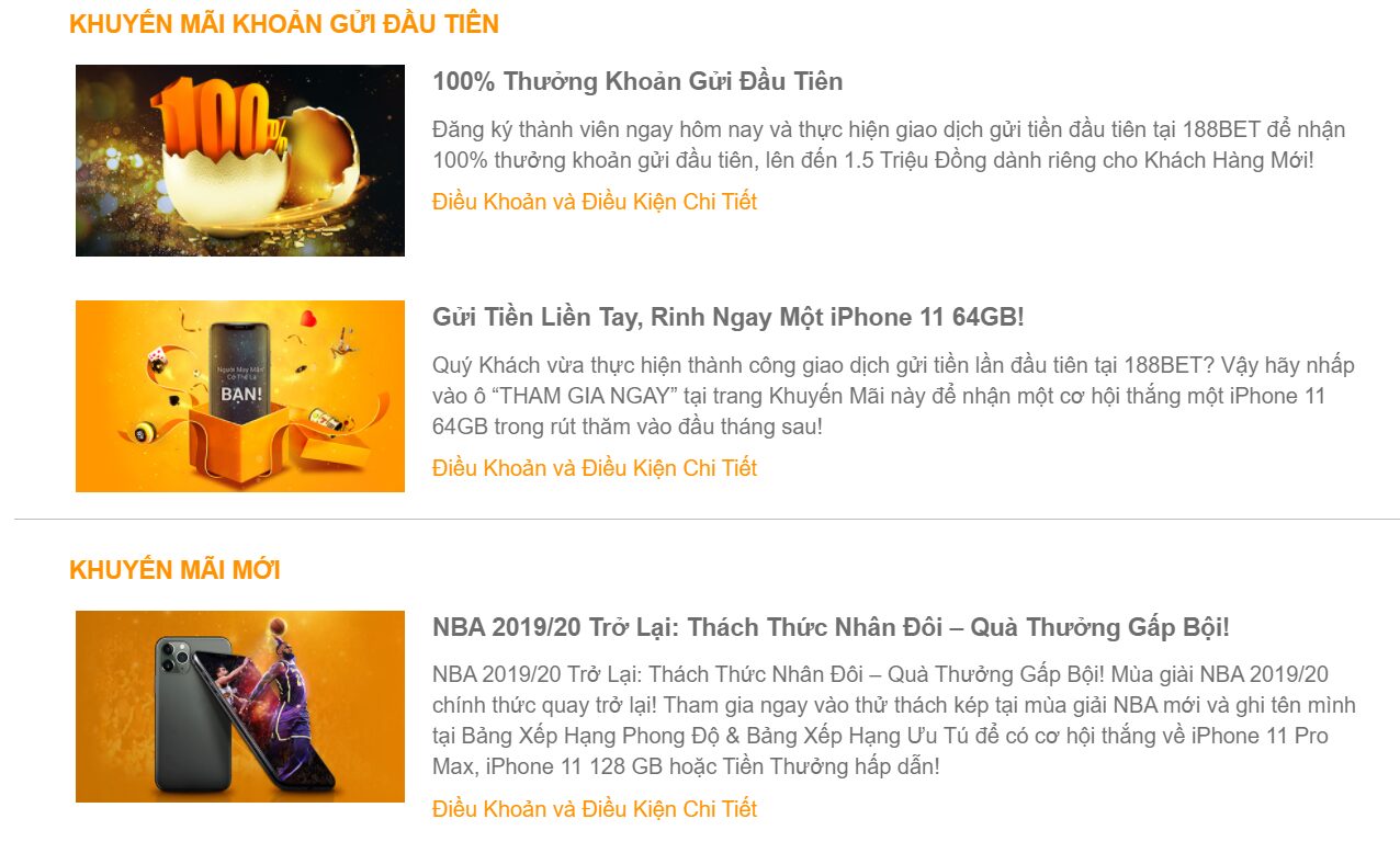 Các chương trình khuyến mãi tại 188BET
