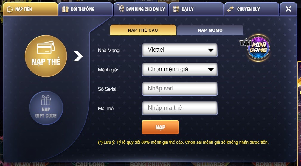 Hướng dẫn nạp thẻ tại nhà cái Kingfun