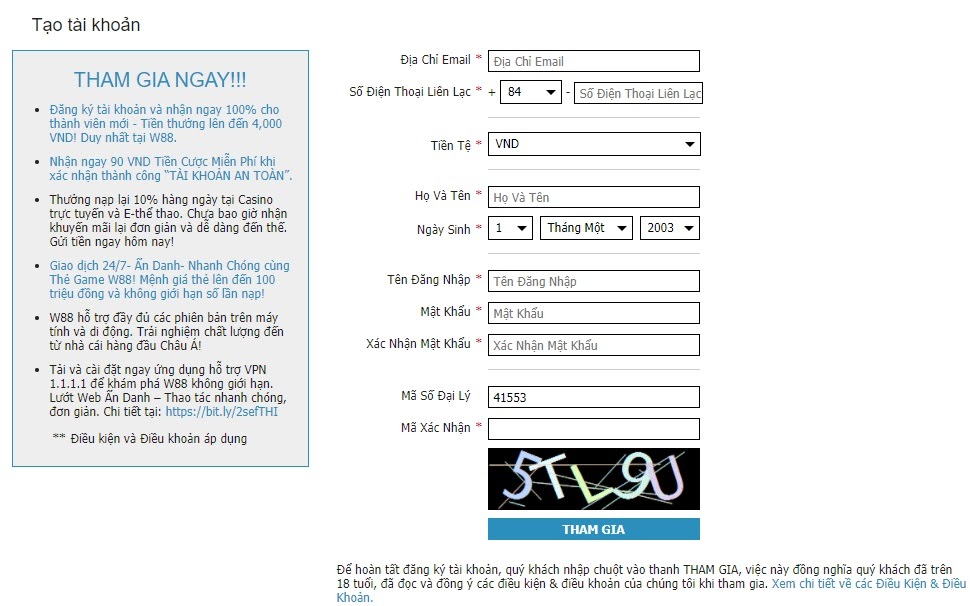 Cuối cùng anh em ấn vào nút tham gia là đã hoàn thành bước tạo tài khoản để trở thành thành viên của nhà cái W88 rồi.
