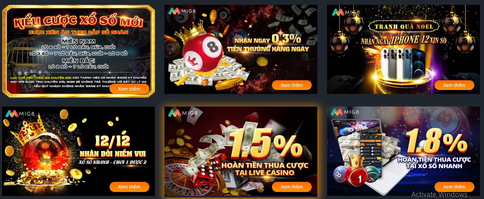 Luôn đi đầu trong lĩnh vực cá cược nên nhà cái này sở hữu một kho tàng các sản phẩm cá cược hot nhất hiện nay và bao trọn thị trường. Các anh em toàn tìm đến đây để trải nghiệm các sản phẩm cá cược. Cùng với đó là tỷ lệ cược ở Mig8 vô cùng ưu đãi và cao. Đến đây anh em thoải mái lựa chọn các loại hình cược và nhận nhiều ưu đãi đi cùng.