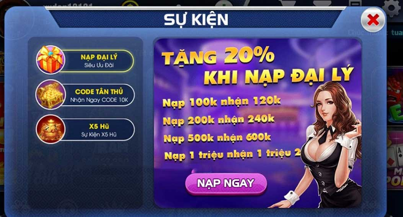 Chơi game và phát sinh giao dịch sẽ được tính điểm vip, đua top vip sẽ được thưởng cho hàng tháng