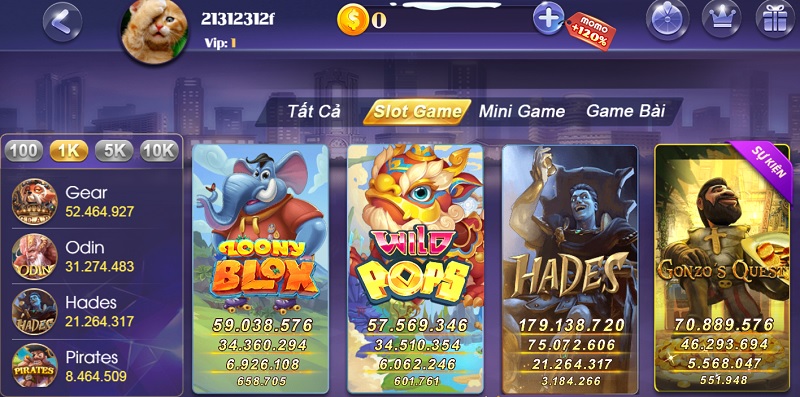 - Các sản phẩm slot game: Đây là các trò chơi quay hũ với tỷ lệ trúng thưởng cực cao. Người chơi có thể trải nghiệm liên tục mà không chán. Trong đó các trò chơi được nhiều người lựa chọn: Poony Blox, Hades, Odin, Aztec…